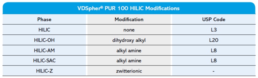 VDSpher PUR HILIC 精睿液相色譜分析柱