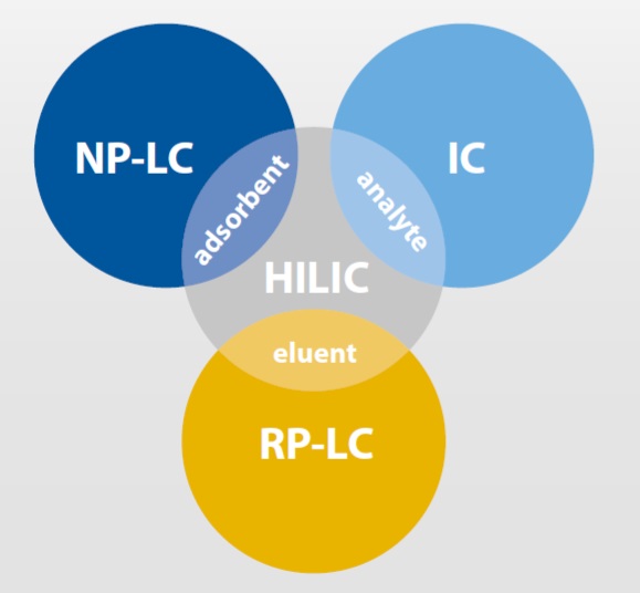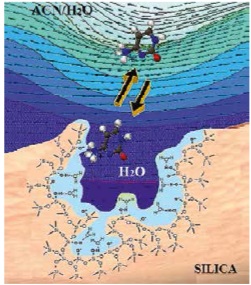 HILIC的機理包括三個方面:①分配②離子交換③偶極-偶極相互作用,試驗表明:HILIC的保留機理包含氫鍵作用、偶極作用和靜電作用等多種次級效應(yīng),很難區(qū)分開來。