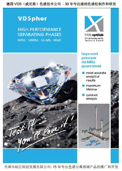 德國(guó)VDS optilab(威尼斯)色譜技術(shù)有限公司成立于1986年,專(zhuān)注于液相色譜柱的制作和研發(fā)。從開(kāi)始OEM提供著名品牌填料液相色譜柱,到擁有性能超群、產(chǎn)品全面的自主品牌VDSpher,經(jīng)歷了30年悠久歷史和日益完善的技術(shù)水平。尤其在提供飯相分離液相色譜柱方面,不僅具有高性能、高柱效、長(zhǎng)壽命和良好的批次穩(wěn)定性,而且提供全面、豐富和多樣性的產(chǎn)品選擇。VDSpher(經(jīng)典)、VDSpher PUR(精睿)、U-VDSpher PUR(超高壓)、Optigel CarbEx(有機(jī)酸、糖類(lèi)分離)等等,充實(shí)的產(chǎn)品為藥品和食品的液相色譜分析、質(zhì)量控制和研發(fā)提供廣泛的選擇。
