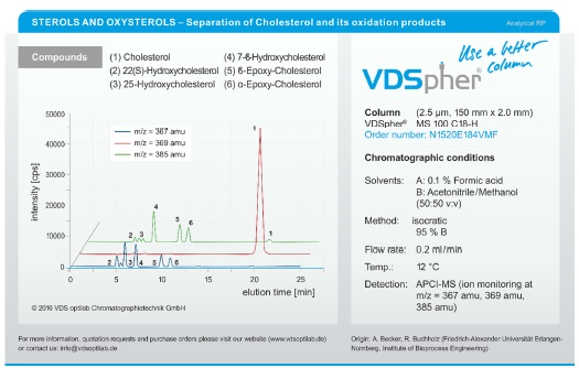 德國VDS Optilab色譜技術(shù)公司具有30年開發(fā)和生產(chǎn)液相色譜柱經(jīng)驗(yàn)的企業(yè),特別是運(yùn)用反相液相色譜分離小分子化合物,產(chǎn)品品種和優(yōu)化的選擇更全面。2017年推出適用于LC-MS/MS分析的VDSpher MS系列液質(zhì)分析柱,分為親水性和疏水性兩大品種: